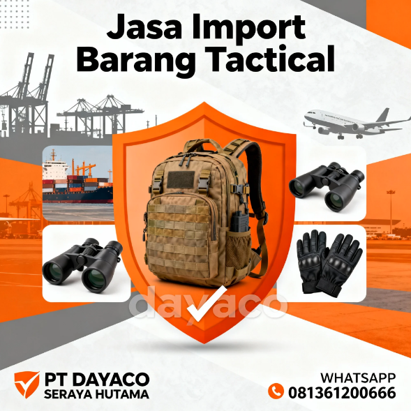 Solusi jasa import tactical outdoor, security, dan industrial yang legal dan aman. PT Dayaco Seraya Hutama melayani impor door to door dengan proses resmi dan transparan untuk kebutuhan bisnis dan proyek di Indonesia.
